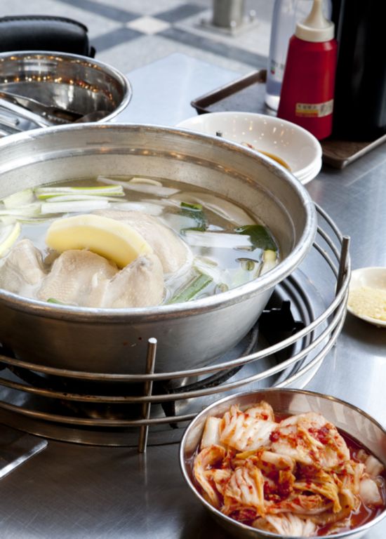 东大门一只鸡胡同里有五六家美味的一只鸡料理店。尽管都是鸡肉料理,却因制作时所添加的配料不同从而使口感与味道各有所长。在这几家店中,“陈玉华奶奶一只鸡”是最元祖的一只鸡店,也是来东大门的游客必吃的一家店之一。每到用餐时间,店外必定大排长龙,人气可见一斑。这里的一只鸡有着独特的吃法:首先,在鸡汤快煮沸时,把泡菜、蒜蓉、辣椒粉等配料倒入锅中,然后等汤煮沸时再加入年糕,最后用剪刀把煮好的一只鸡剪成小块即可食用。吃的时候蘸上用芥末、韭菜、辣椒、酱油等调味料特调的小料,鲜嫩的鸡肉配上Q弹的年糕,无论是口感还是味道都很独特,加上锅内不断溢出来的浓浓鸡汤鲜香味,难怪过了几十年还能维持着这么高的人气!
