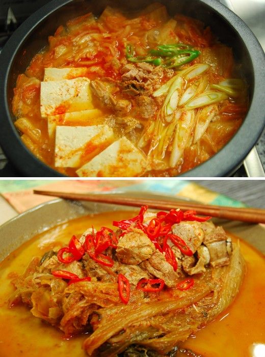 煮泡菜汤不需要什么特殊的配方。也就是在泡制的很熟的泡菜里面放入猪肉、金枪鱼、青花鱼、秋刀鱼和豆腐等一些自己比较喜欢的配菜,小火慢煮至沸腾,然后可口的泡菜汤就出炉了。正因为没有特定的配方,所以根据个人的喜好有多种多样的口味。有肉多汤少的泡菜烩,还有很值得品尝的排骨泡菜汤,还有小孩子喜欢的放了火腿和香肠的泡菜汤,反正根据个人的喜好可以自由发挥。